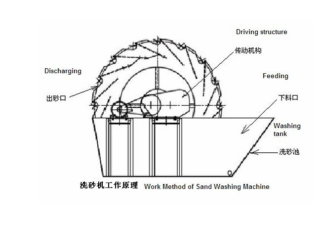 1、砂水混合物进入洗砂机清洗箱,由叶轮分离机进行分离,然后合格物料进入下层脱水筛进行脱水处理;